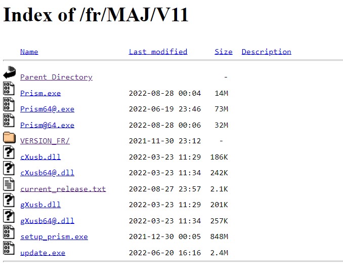 Bonjour, En désinstallant Prism V11 et en réinstallant cette même V11, on reste sur la V11.0.3.6, mais là la mise à jour fonctionne. Je suis maintenant en V11.1.0.17. 9.jpg Par contre, en l'ouvrant en tant qu'administrateur, Prism refuse de charger un fichier de config (mais l'enregistrement fonctio...
