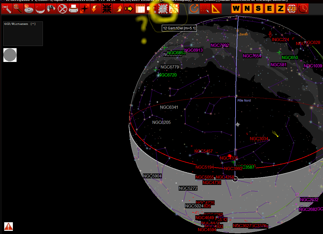 Bonjour je joint une capture d'écran pour montrer que je n'ai plus accès au pointeur qui localise la position de ma monture.