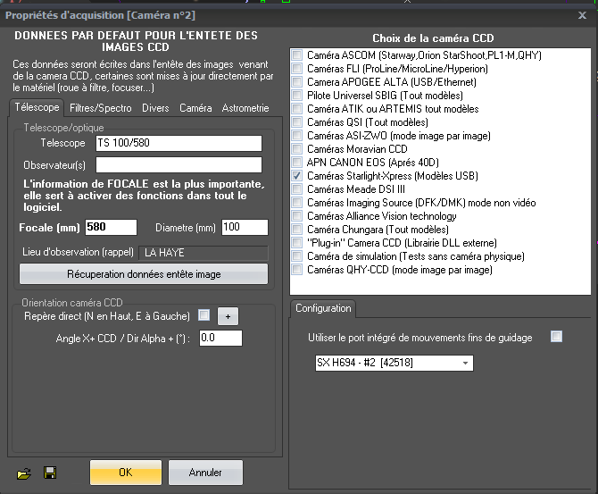 ces deux caméras + la lodestar sont à tour de rôle sur une lunette TS100/580 monté sur une eq6-r en poste fixe .
