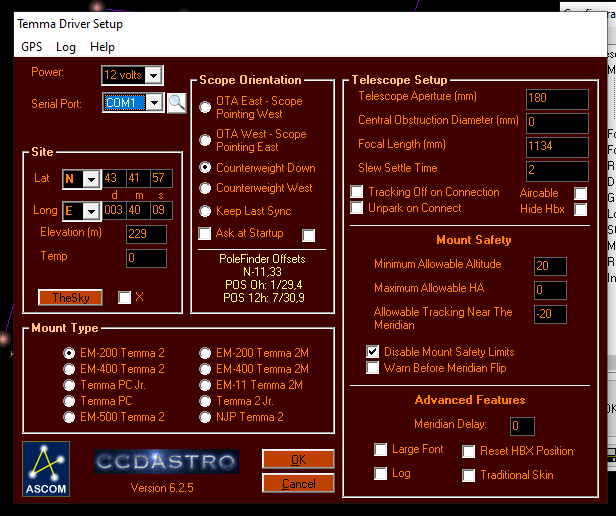 J'ai une Temma 2Z, si vous pouviez poster une capture d'écran de la commande Ascom (comme celle qui suit)
