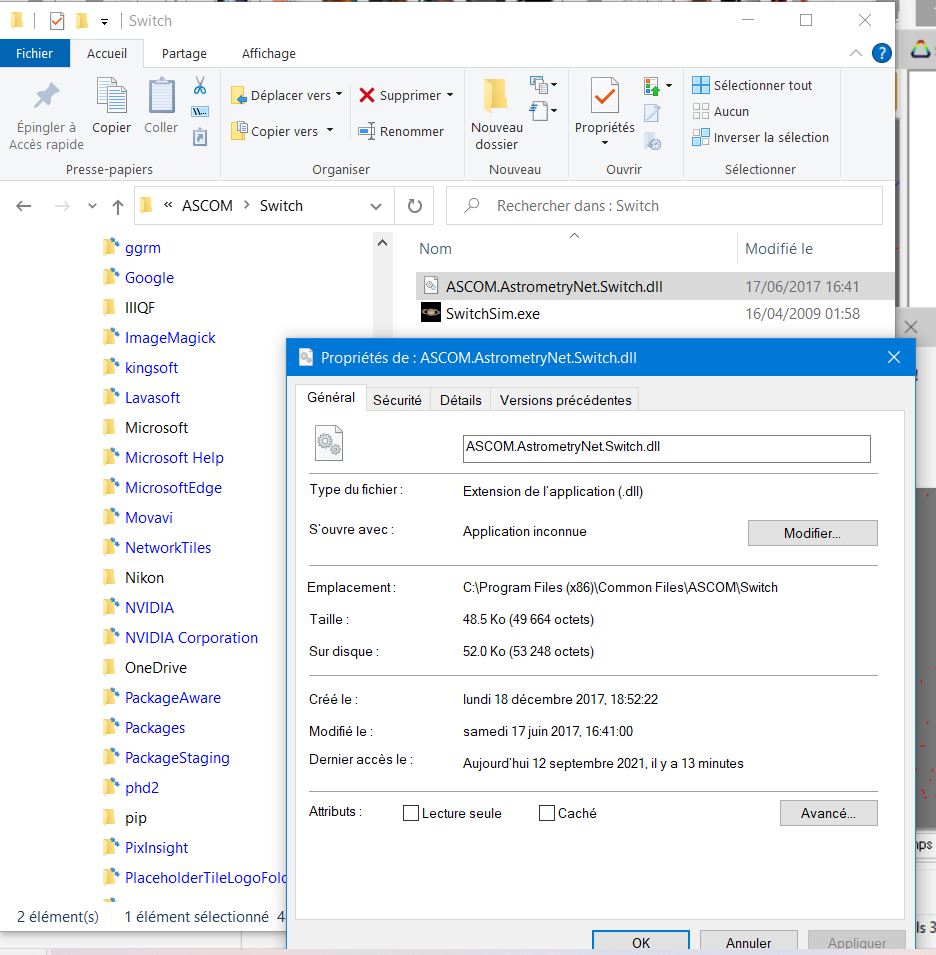 Le plugin ASCOM.AstrometryNet.Switch est bien installé sous C:\Program Files(x86)\Common Files\ASCOM\Switch (voir PJ)