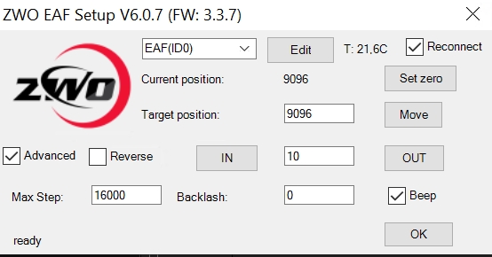 Premier réglage: en ne cochant pas "utiliser le focuseur avec des pas codeurs (sinon on sera avec des mm) dans "configuration générale de Prism"