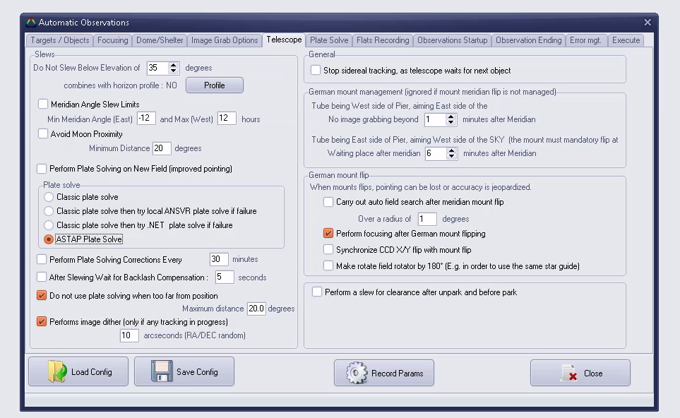 I have a new 10 micron 2000 HPS mount. I don't need to plate solve anymore. Is there an option in Automatic Observation menu to disable plate solving?
