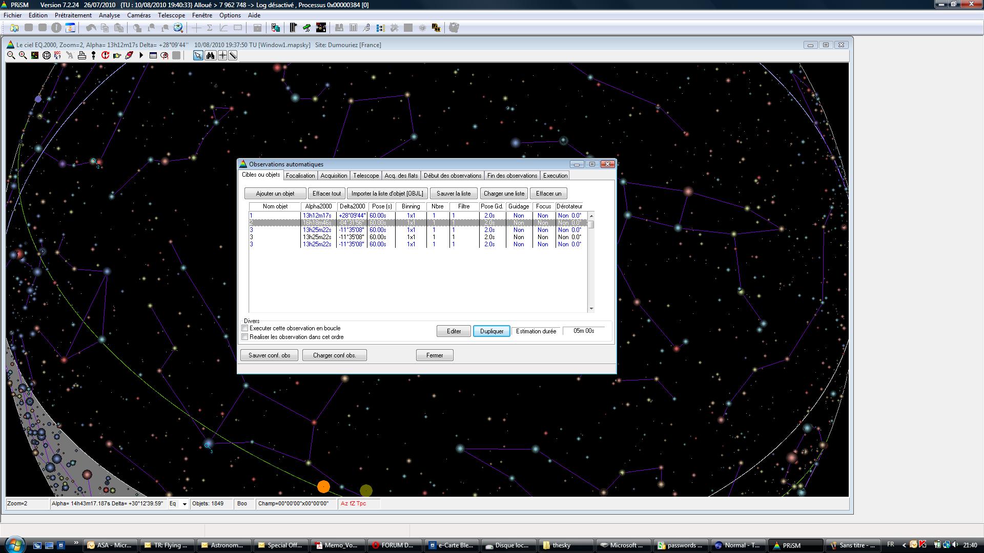 Je définis une liste d'objets différents (M13, M92, M31 par ex.), je les l'importe pour les observations automatiques. J'ai donc trois lignes : M13, M92, M31.