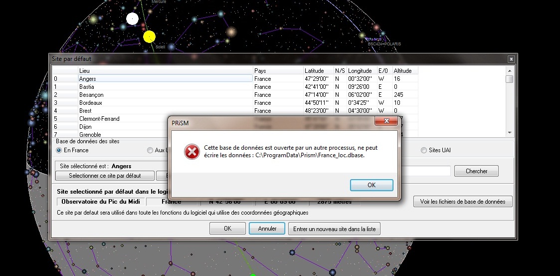 mon probleme est le suivant , je souhaite declarer les coordonnées de mon site d'observation , et à chaque fois j'ai le message suivant .