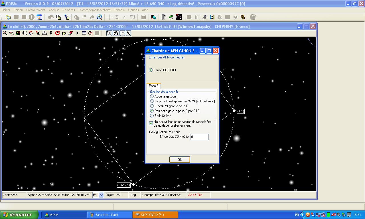 Je suis obligé de passer par Cameras/Aquisition Canon autres modèles comme ici en cochant l'option port série car si je coche : la pose B est gérée par L'APN, ça ne fonctionne pas: