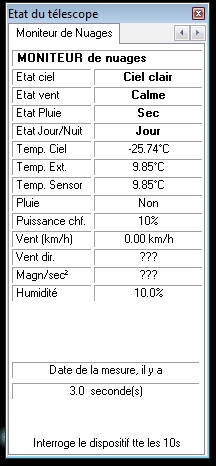 j'ai l'impression que dans l'onglet détecteur de nuages, j'ai toujours <"Puissance chf" à 10% (j'avoue ne pas savoir ce que signifie chf), et que j'ai toujours une humidité à 10% (ici elle était en fait de 41%)...