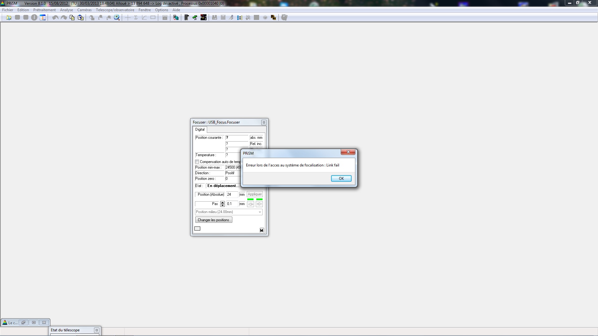 la consequence est que le bouton qui sert a faire bouger le focuser est grisé