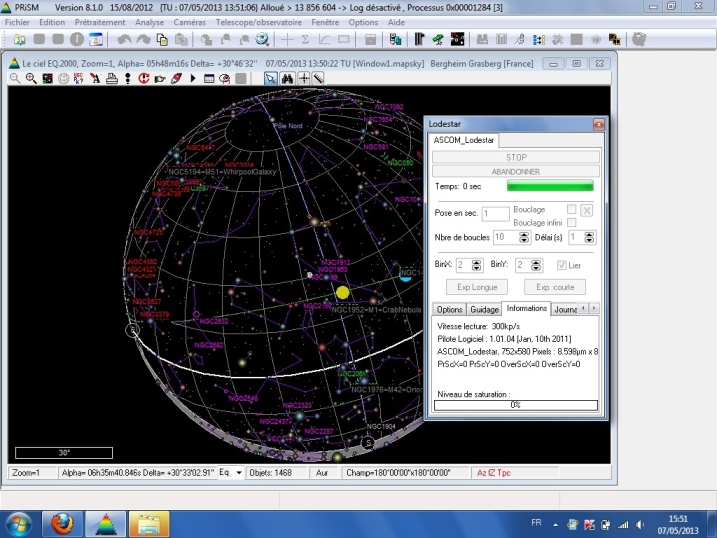 ---A) PC de bureau (pour traitement des images) - windows 7 64 bits - Prism v8.1.0 - Ascom 6 SP1 - driver Ascom lodestar 5.5.1.13082
