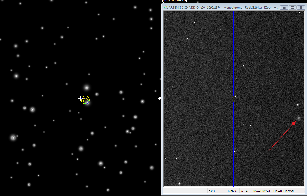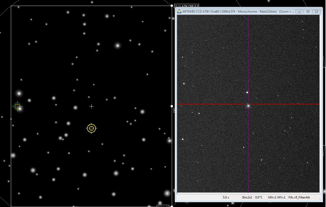 Tu vois que malgré les 90° de rotation l'image, plus un decalage, elle est orientée correctement / au ciel avec les cases de compensations de l'onglet option de panneau de contrôle de la camera CCD.