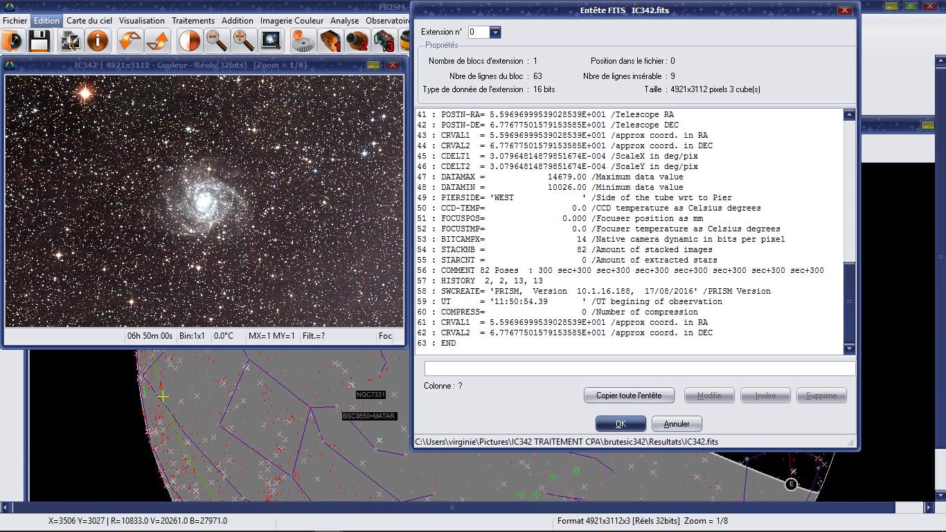 Pour cette image, le prétraitement a été fait de A à Z avec prism (cpa), d'ailleurs j'ai une autre question : pourquoi le maître dark, offset et flat ressortent en fit alors qu'au départ tout a été converti en CPA ? Je devrai avoir les maîtres en CPA non ?