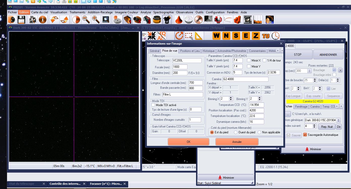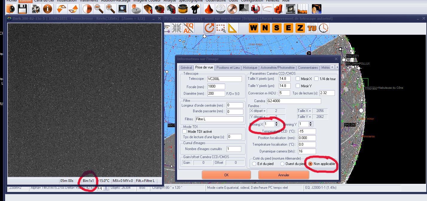 Donc ce matin, en manuel, je fait les Darks de 300sec, et l'information de position et direction se trouve bien dans le Dark (voir photo ci joint)