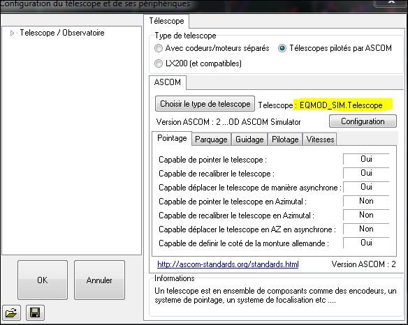 Il faut choisir "telescope pilotés par ascom" , puis cliquer sur "choisir le type de telescope"