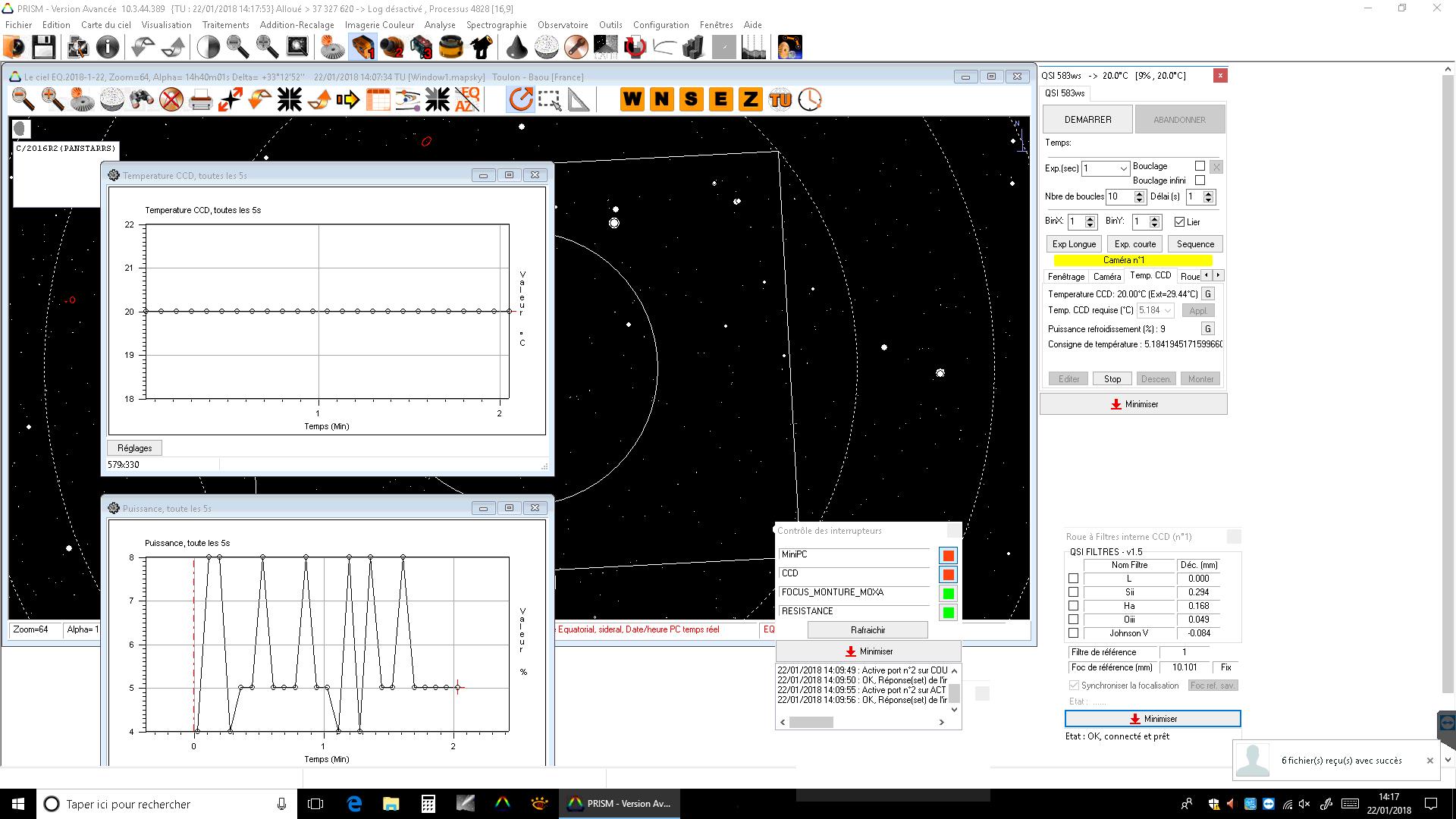 Caméra principale Acquisition CCD QSI583WSG pilote 2.8.26.0 du 16/11/2012 Firmware 5.2.6
