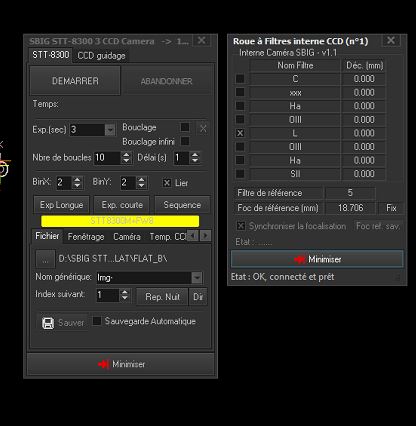 Je n'ai pas de camera SBIG et ni roue a filtre de cette marque.