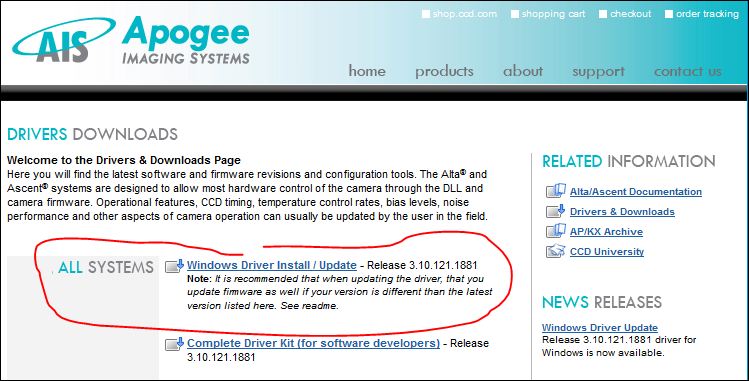 Je viens d'essayer à l'instant et hélas cela ne fonctionne pas. J'ai téléchargé les driver sur le site d'apogee, je les ai installés, j'ai connecté la tourelle qui semble être bien vu par windows (présente dans le gestionnaire de périphériques et dans le ApogeeCameraInfo.exe. Cependant quand je lance Prism et que je veux la connecter j'ai le message suivant :