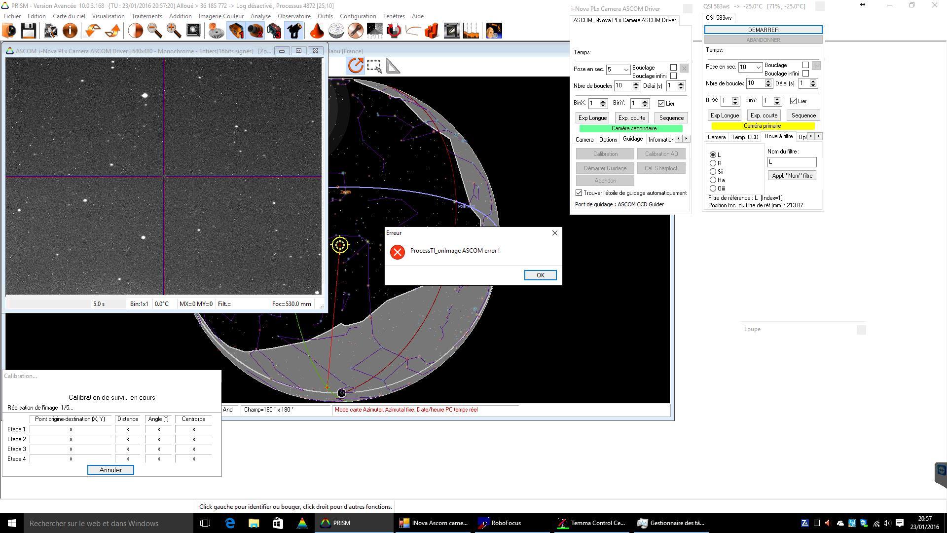 Première fenêtre :"ProcessTI_onImage ASCOM error !"