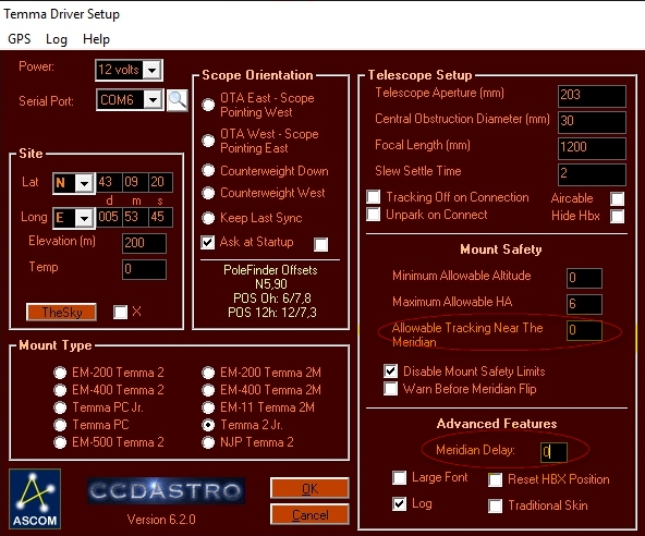 Monture EM200 Temma 2Jr et driver ASCOM Telescope driver for Takahashi Temma protocols 6.2.0.0