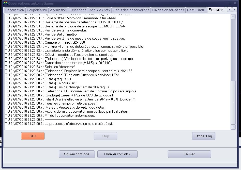 J'ai essayé de lancer une observation automatique avec guidage et j'ai le message suivant qui apparaît et la cession stoppe immédiatement.