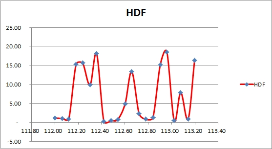 On peut voir dans l'exemple ci-dessous que les valeurs HDF sont incohérentes : on passe par exemple de 0.9 (3/21) à 15.32 (4/21).