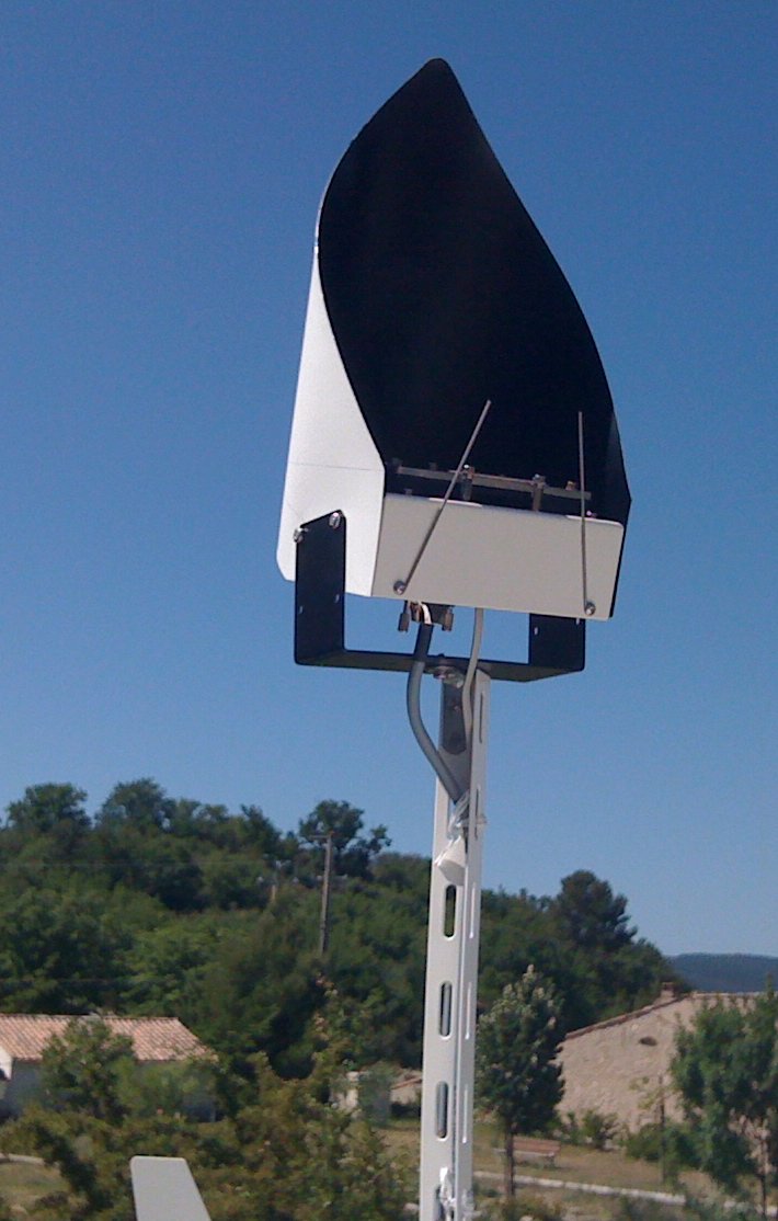 Pour la pluie: pas encore vérifié, mais un cône vertical est bien dégagé. Comme le "masque" doit être orienté selon l'axe N-S; en toute honnêteté, si la pluie arrive par FORT vent de SUD, les premières gouttes ne toucheront sans doute pas le capteur, mais celui-ci étant très sensible, les suivantes ne le manqueront sans doute pas bien longtemps....