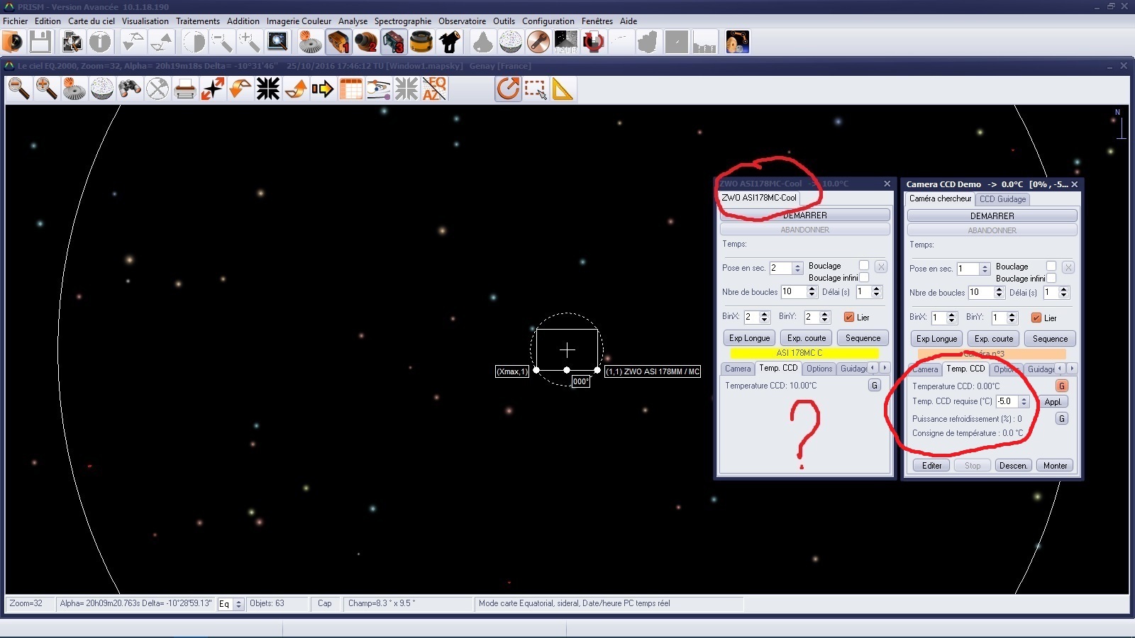 J’ai une caméra CCD ASI178MC COOL que je pilote via PRISM, mais dans l’onglet « Temp CCD » il n’y a pas les commandes de réglages (voir pj )