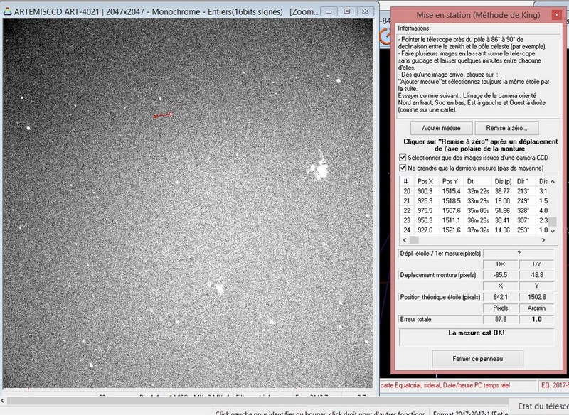 Le déplacement de la monture en plusieurs itérations, voir l’imprime- écran image 1, j’arrive à une minute d’arc