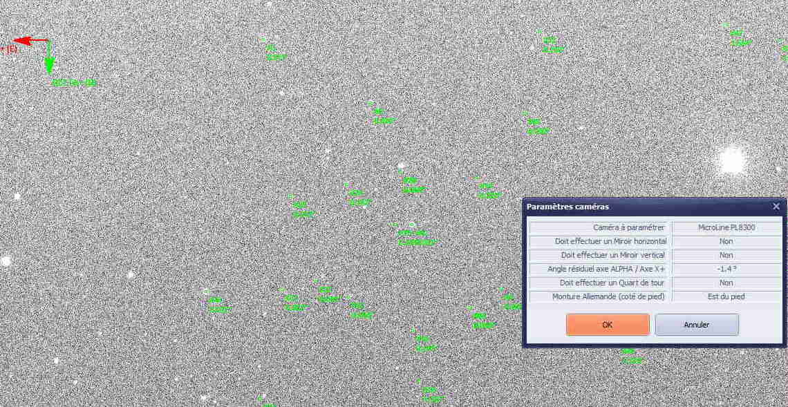 Je confirme, le problème est bien réel. j'en ai fait la désagréable expérience dans la nuit de vendredi à samedi dernier pendant une tentative de MES avec la méthode King: ça converge bien, puis au bout de 2/3 itérations ça diverge violemment. J'avais préalablement orienté la CCD avec la routine automatique de Prism, mais oublié le problème du Nord en bas, déjà rapporté depuis octobre 2017. Bref, après avoir contrôlé en comparant une image CCD et la carte du ciel, le Nord est bien orienté... vers le bas. Après modification manuelle des miroirs, plus de problème, MES aux petits oignons.