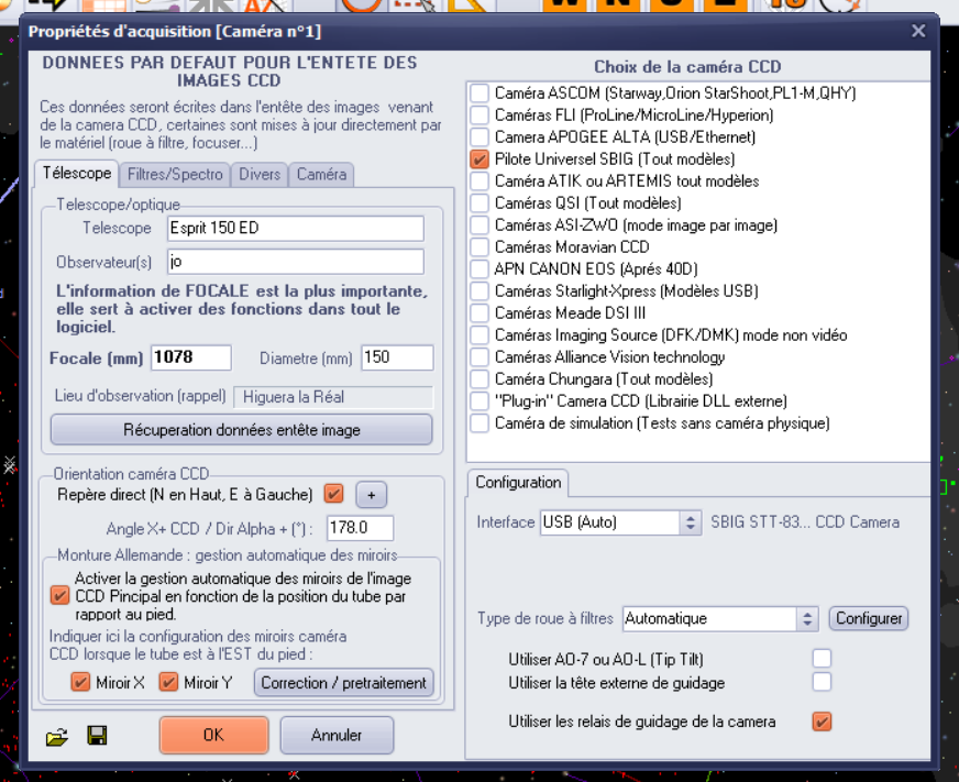 Là il y a un truc que je ne pige pas et que je dois mal paramétrer quelque part (dans le setup du driver ascom ? )