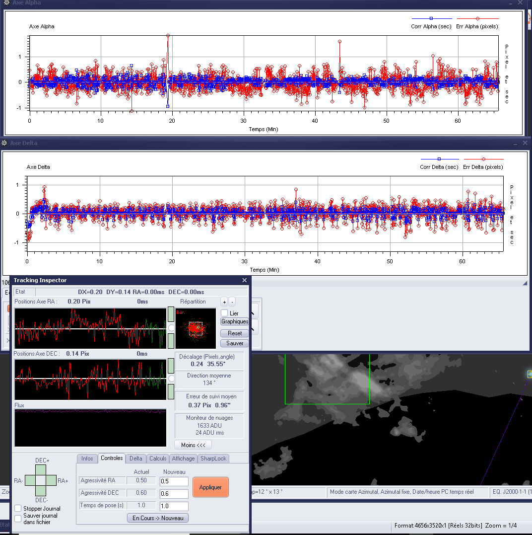 Je cherche du coté du panneau ASCOM, je modifie les gains et la vitesse de suivie, mais le suivie est pas trop mal en dehors des ces périodes, donc?...