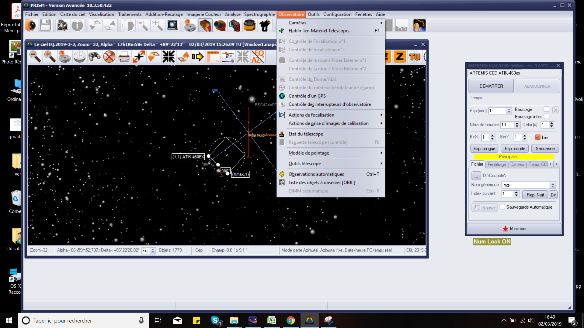 menu "Observatoire">>> "Controle de la roue externe N°1" reste grisée ! Que puis je faire? Etrangement je peux, depuis la config dans le panneau