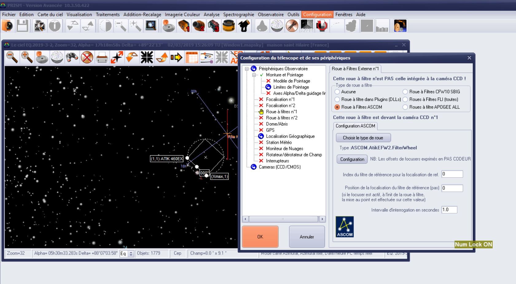 J'ai une Caméra Atik 460ex et une RAF externe Atik EFW2. J'ai déclaré et configuré la RAF voir "capture config 1 et 2", mais la commande du
