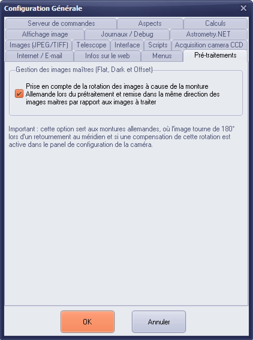 Prism au prétraitement regarde les miroirs X et Y, mais je ne sais pas si il prend en compte une rotation de 90°. La rotation de 90° est rarement utilisé… personnellement, je n'ai vu son utilisation que sur certaines cameras de chez Moravian. C'est le cas avec la G4-16000 par exemple, si on veut garder un certain alignement de la camera.