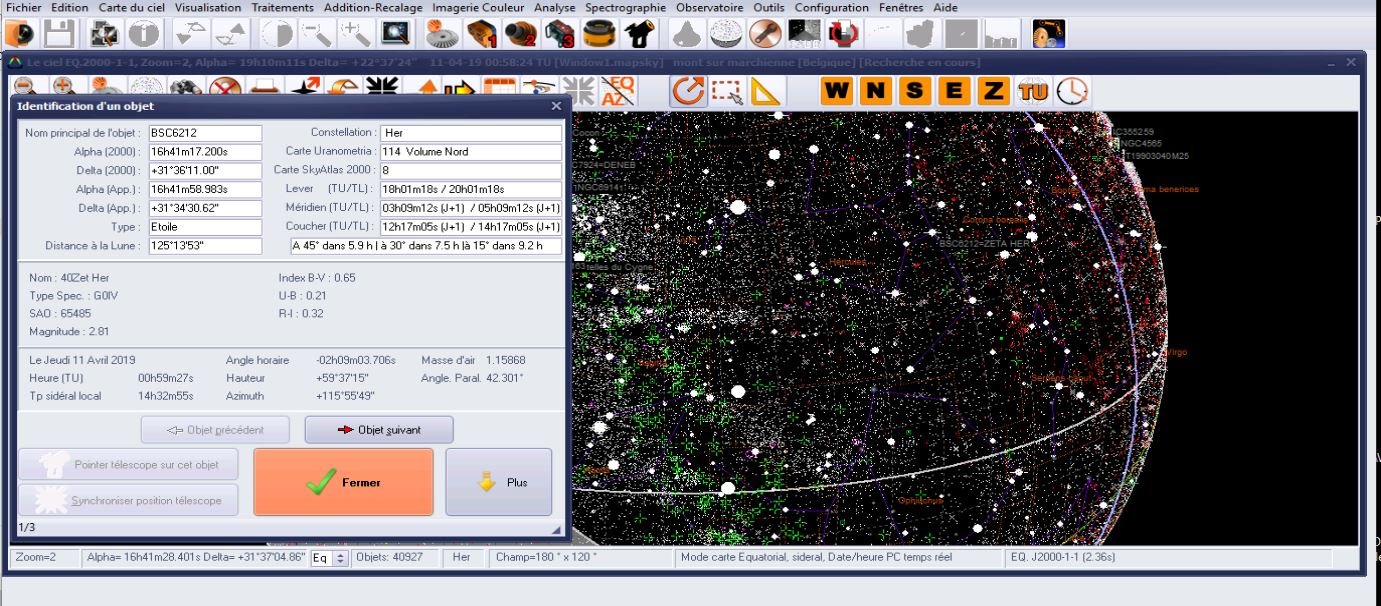 Et l'objet BSC6212, a l'heure du log était: direction EST , a 59 degré de hauteur (voir attaché)