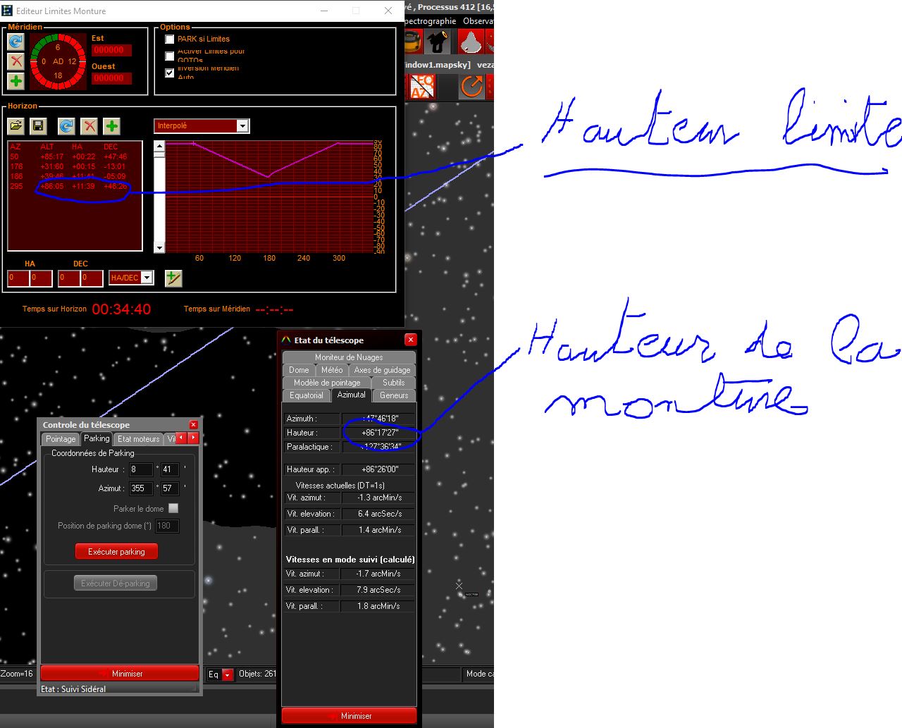 Je m'essaye à la limite de monture qui me sera bien utile lors des observations automatique mais je pense que je comprend pas le truc .