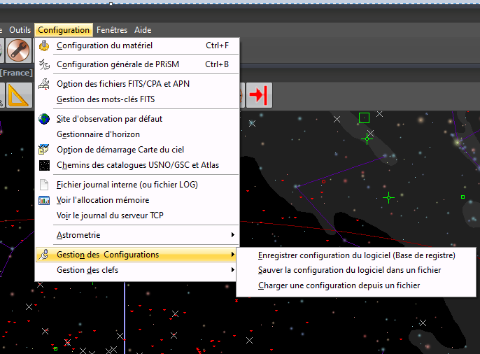 Je rencontre un problème récurent dans Prism lorsque je souhaite changer ma configuration des caméras . J'ai deux caméras et un autoguideur que j'utilise à tour de rôle avec deux fichiers de config que j'ai précédemment enregistré en choisissant le menu