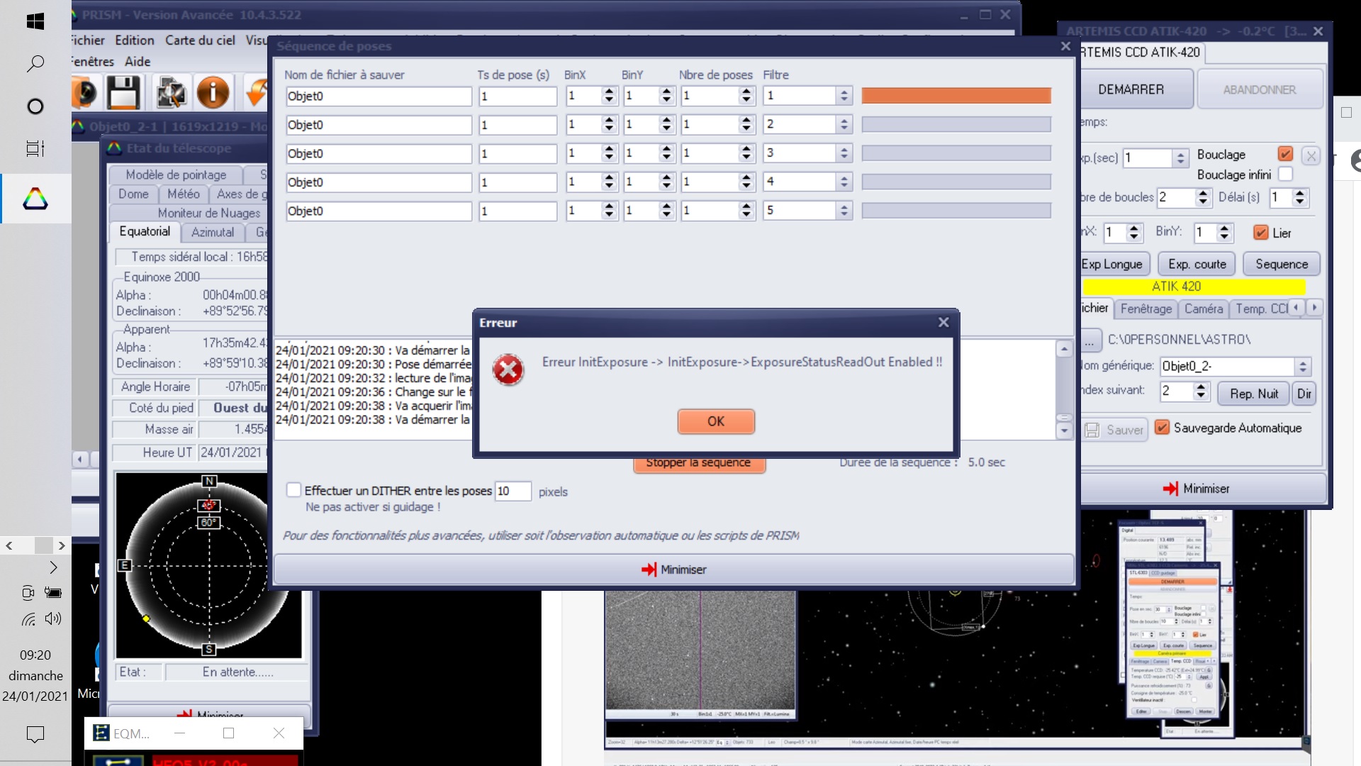 Bon il reste le problème d'invariant quand je connecte le télescope....