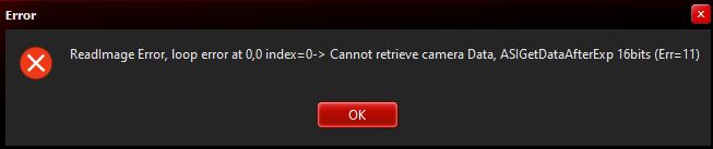 C'est maintenant la ASI 2600MM qui a régulièrement son timer d'exposition qui se bloque à 0 et aucun téléchargement d'image ne s'effectue, ce qui stoppe les observations automatiques et met le télescope en park. Impossible donc de laisser en automatique toute la nuit comme avant.