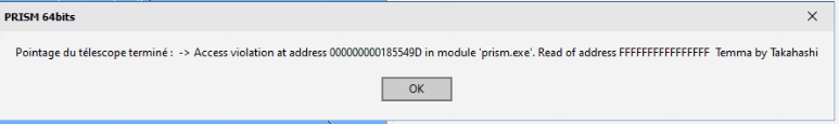 Je ne veux pas exclure Prism, mais ca peut etre du aussi au driver ASCOM aussi ?