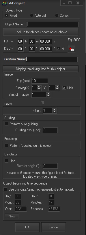 Maintenant, à la fin de la nuit d'observation, je dois encore parcourir chaque comète et remplir le nom de l'objet, sinon je ne peux pas exécuter de script automatique.