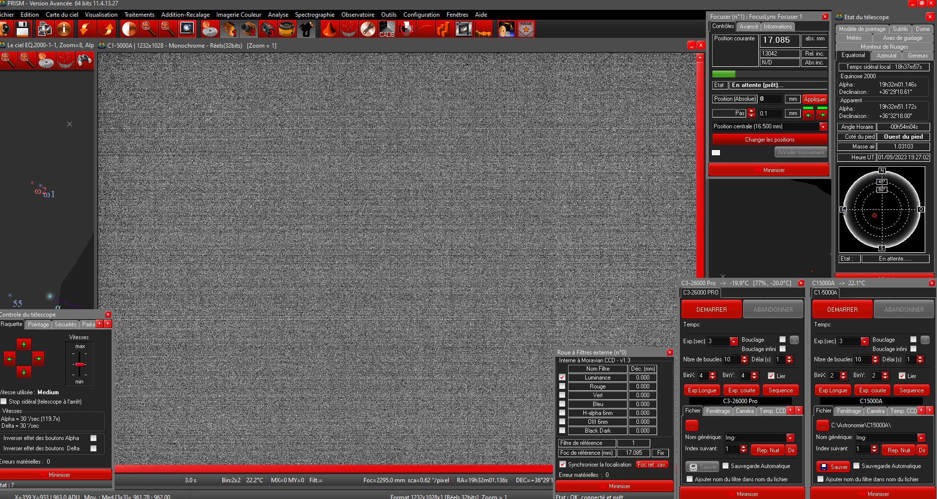 J'ai un soucis d'affichage après avoir changé de caméra de guidage. Je suis passé sur une Moravian C1 5000A, et sur prism, pose de 3 secondes BIN 2 donne ceci comme affichage : J'ai tenté la même zone, même temps de pose sur le logiciel SIPS de Moravian et voici l'image : Est-ce qu'il y a un réglage particulier à faire dans Prism pour obtenir un affichage correct et pouvoir utiliser cette caméra ?