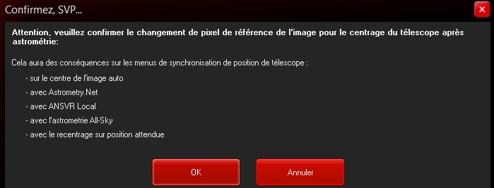 APRES : (Pour information, les coordonnées de référence sont sauvegardées pour des coordonnées images en BIN1, quelque soit le binning d'acquisition de l'image).