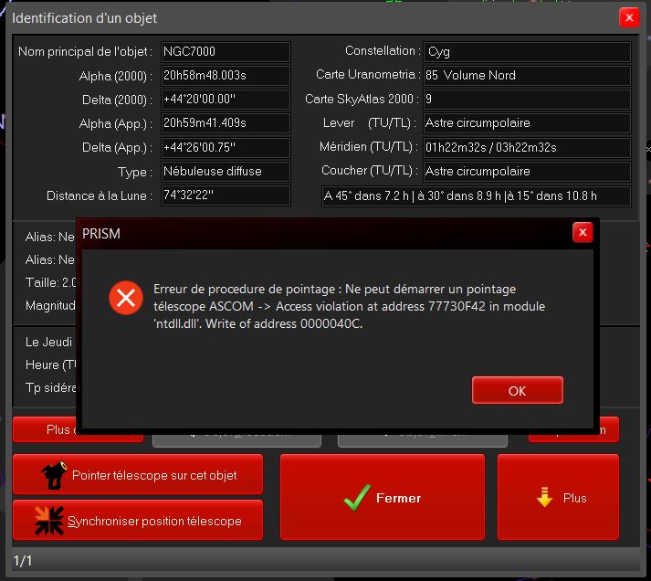 par contre dans le menu configuration la fonction était validée au niveau "forcer la mise à jour de la latitude/longitude du drivers ascom par prism"