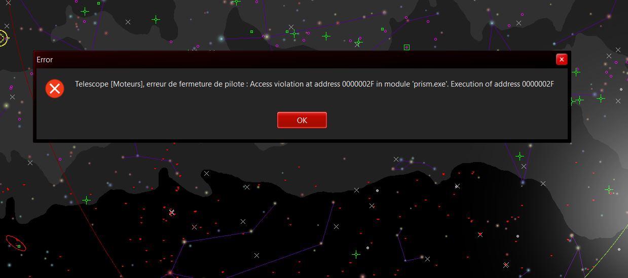 j'ai des bugs avec la gestion de cette monture . lors que je déconnecte l'ensemble j'ai un message d'erreur et quand j’accède dans la configuration du telescope et de ces périphériques il me dit qu'elle est encore connectée . je refais une déconnecxion sur le sigle télescope et il me dit voulez vous déconnecter ?
