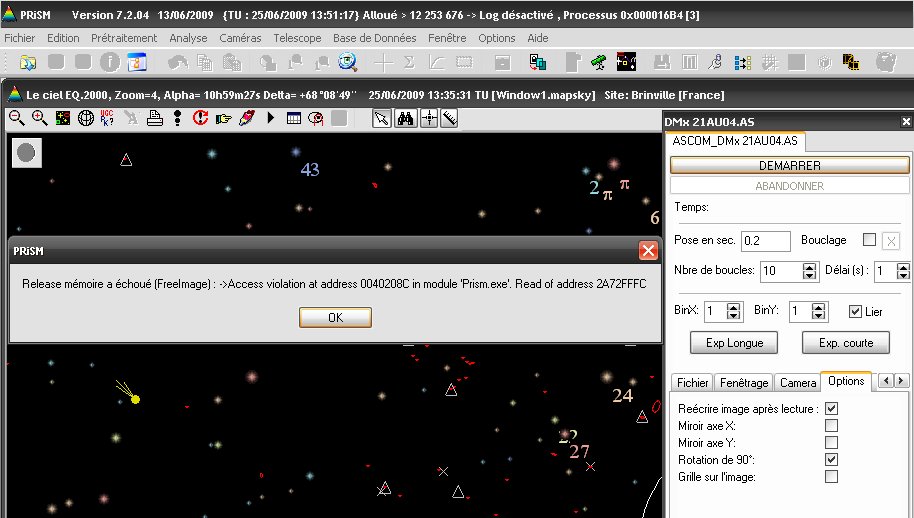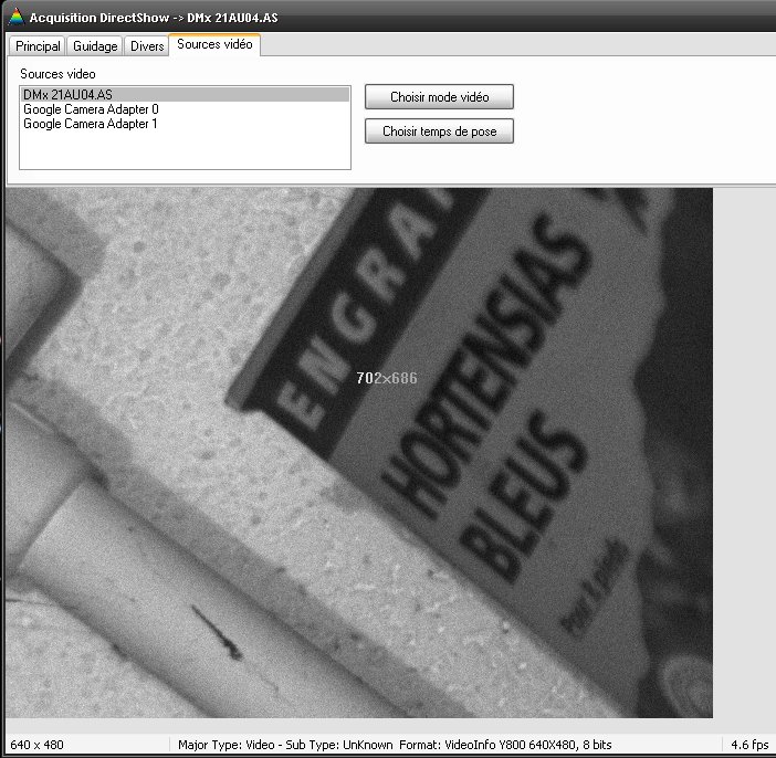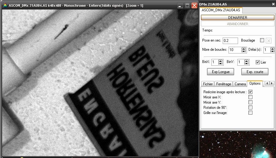 Orientation différente entre DMK en live et DMK en CCD, il faut faire un miroir en Y pour visualiser le champ à l'identique.