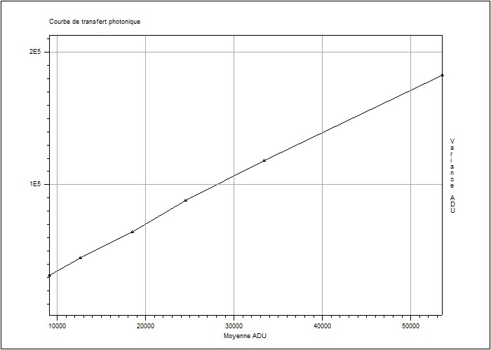 Je n'ai pas ce problème avec d'autres logiciels (Envisage, Nebulosity, MaximDL). J'ai effectué un test de linéarité et obtenu les courbes de transferts photoniques suivantes: