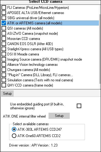 Je vais essayer, mais je sais que je suis pas en ascom. Car dans l'onglet de pramétrage des caméra j'ai coché "Atik ou Artemis tous modèles"