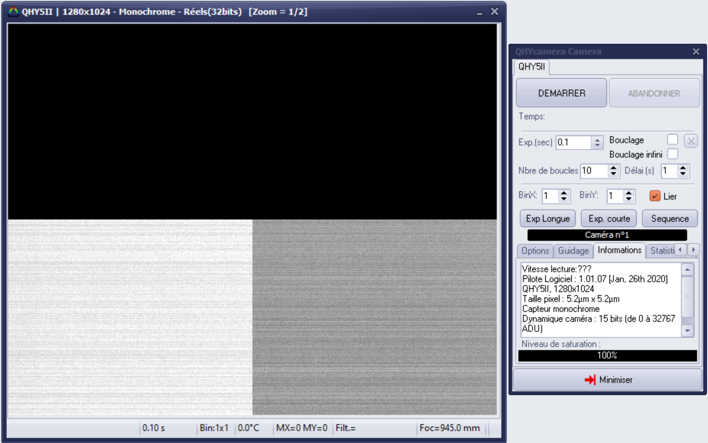 Sinon, ici le problème avec la caméra QHY-5 II: