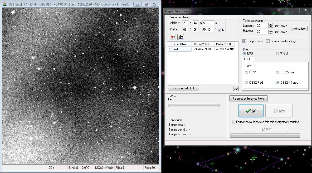 Effectivement cela fonctionne sur d'autres champs, je suis sur une zone proche du centre galactique (vers -35d)