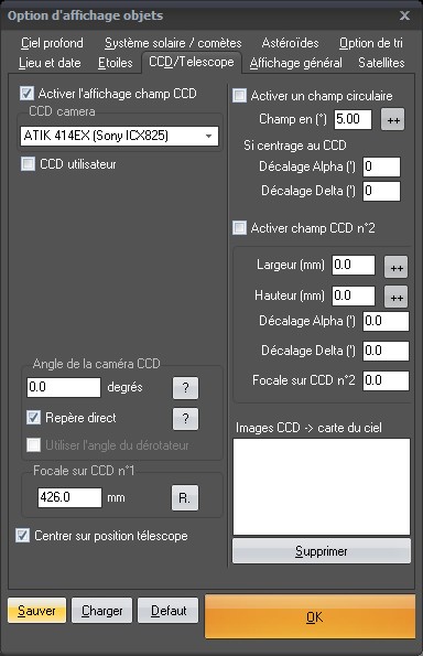 Gestion de la fenêtre carte du ciel.